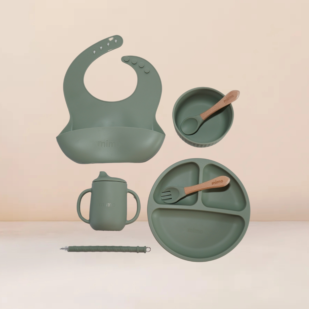 Estos hermosos set de alimentación complementaria esta diseñado para disfrutar junto con tu bebe de esta etapa. Fabricado de silicón grado alimenticio libre de BPA, es seguro, suave y muy facil de limpiar. incluye: babero ajustable, plato con divisiones y tazón profundo con succión, vasito con popote y cuchara y tenedor ideales para manitas pequeñas.