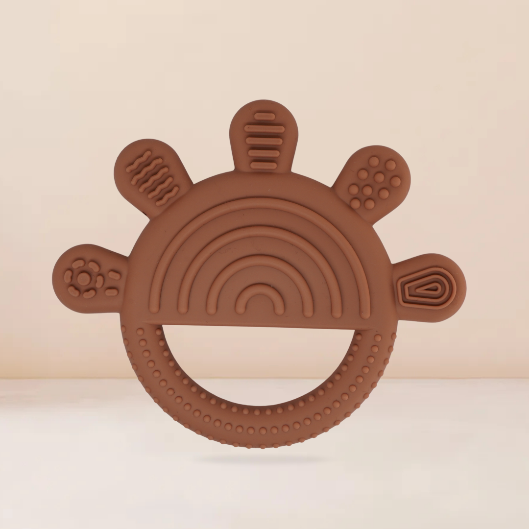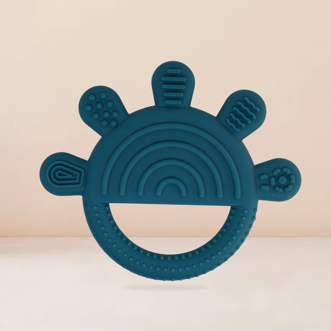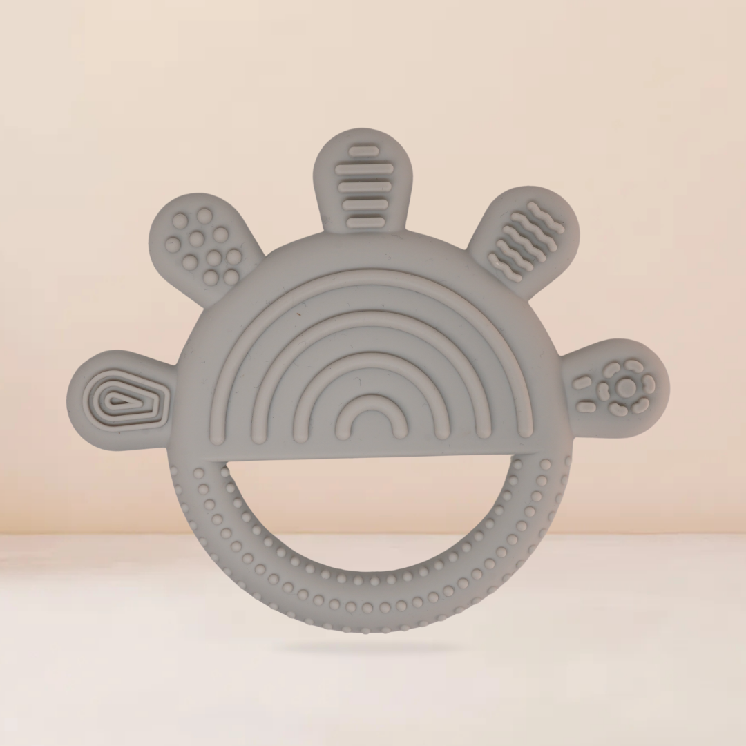 Esta mordedera de silicón en forma de arcoíris es ideal para acompañar a tu bebe durante la etapa de denticion. Esta fabricado con silicón grado alimenticio, libre de BPA y ftalatos, completamente segura para morder. Su diseño ergonómico en forma semicircular permite un fácil agarre para manitas pequeñas, mientras que sus múltiples texturas estimulan las encías y contribuyen el desarrollo sensorial.